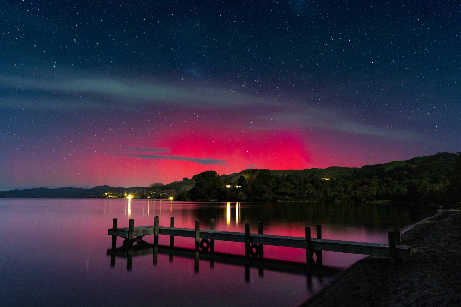 The image was captured at Cliff Rd Jetty, Lake Tarawera. An aurora was predicted for the evening and just after 8pm I noticed a faint pink glow on the horizon behind the hills at the other end of the bay - so I took a very long exposure for an aurora and this is what the sensor picked up - I was stunned quiet frankly and got all excited to capture more which I did at Blue Lake just a few minutes away later in the evening