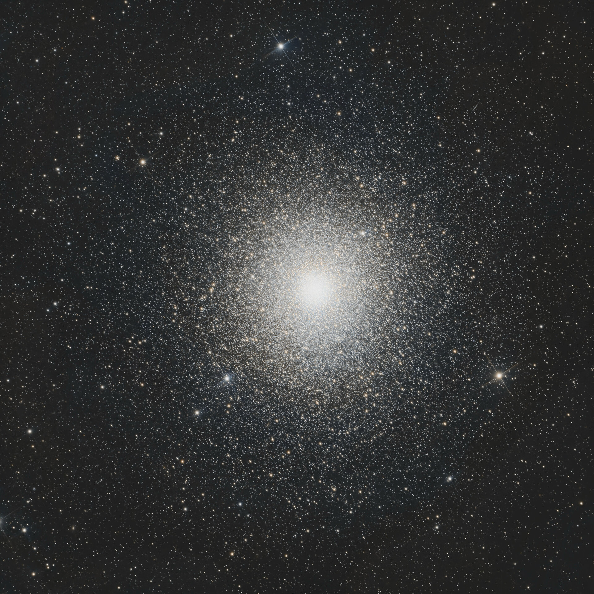 47 Tucanae, NGC 104, Caldwell 106 is the second brightest globular cluster in the sky and contains millions of stars, the oldest of which have been measured at 13 billion years old.