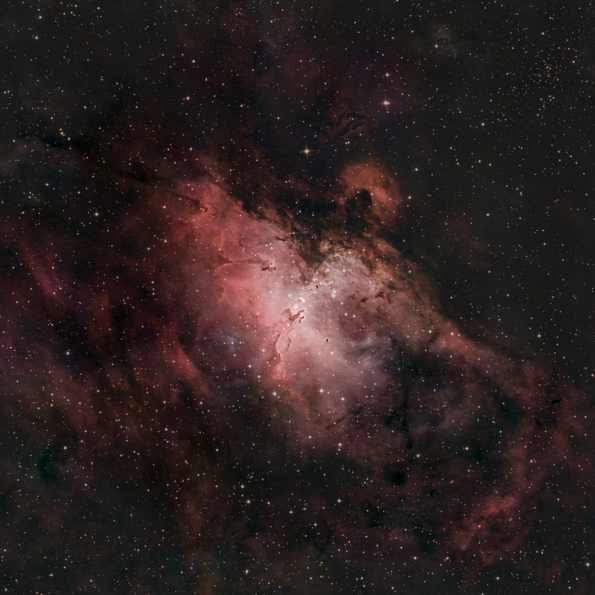 NGC 6611 (M16) - The Eagle Nebula, featuring the 'Pillars of Creation'. I'm relatively new to astrophotography and this is the first image I have ever entered in a competition. I wanted to capture this image after recently finding out that the Spitzer Space Telescope uncovered a cloud of dust in the vicinity of the Pillars of Creation that hypothetically could be a shock wave produced by a supernova. The appearance of the cloud suggests the supernova shockwave would have destroyed the Pillars of Creation 6,000 years ago. Given the distance of roughly 7,000 light-years between Earth and the Pillars of Creation, this would mean that they have actually already been destroyed, but because light travels at a finite speed, this destruction should be visible from Earth in about 1,000 years. Armed with this knowledge, I think it makes the image all the more special.