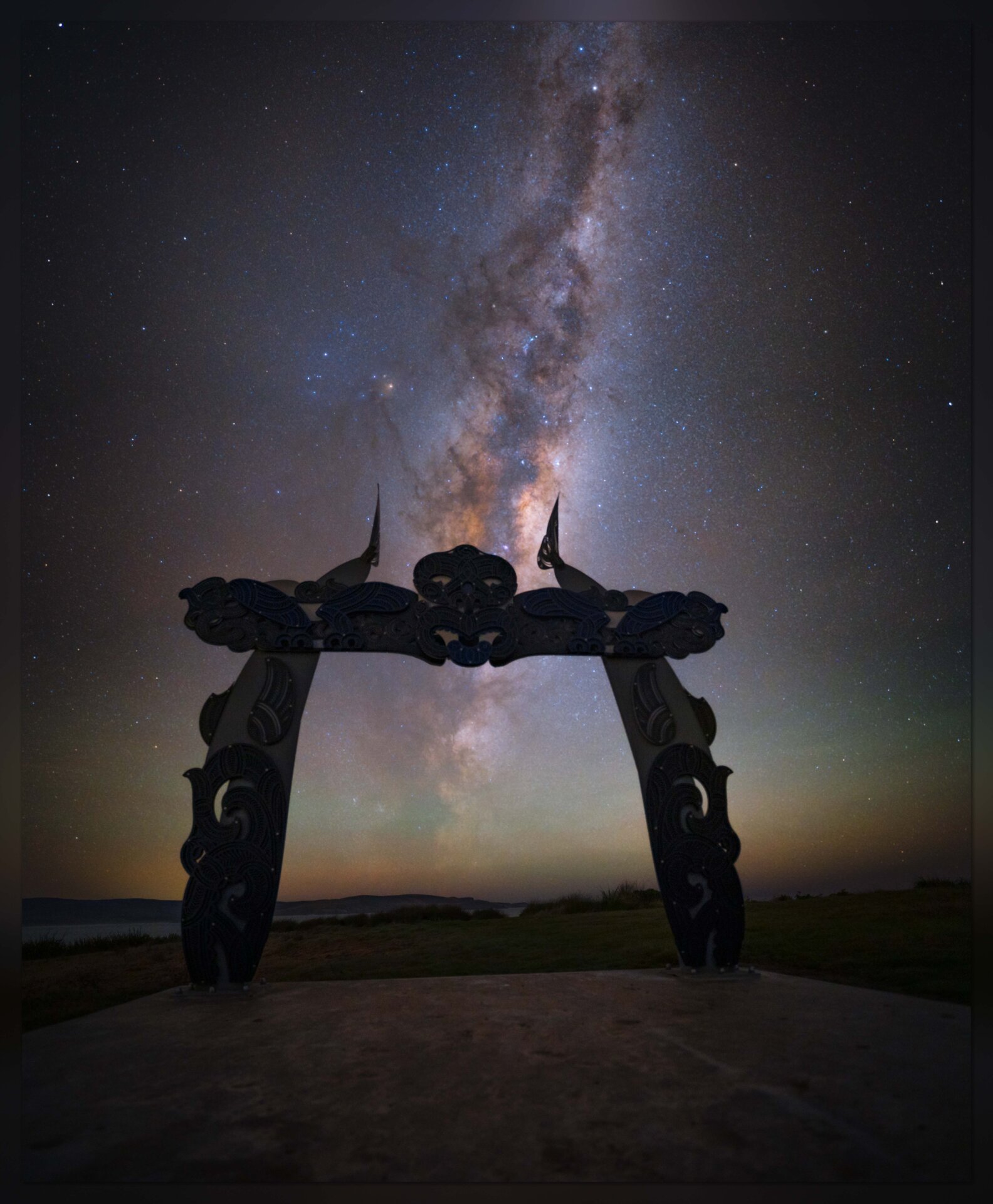 The Pou Waita stands as a prominent gateway to the stars laying beyond it\'s etched archway