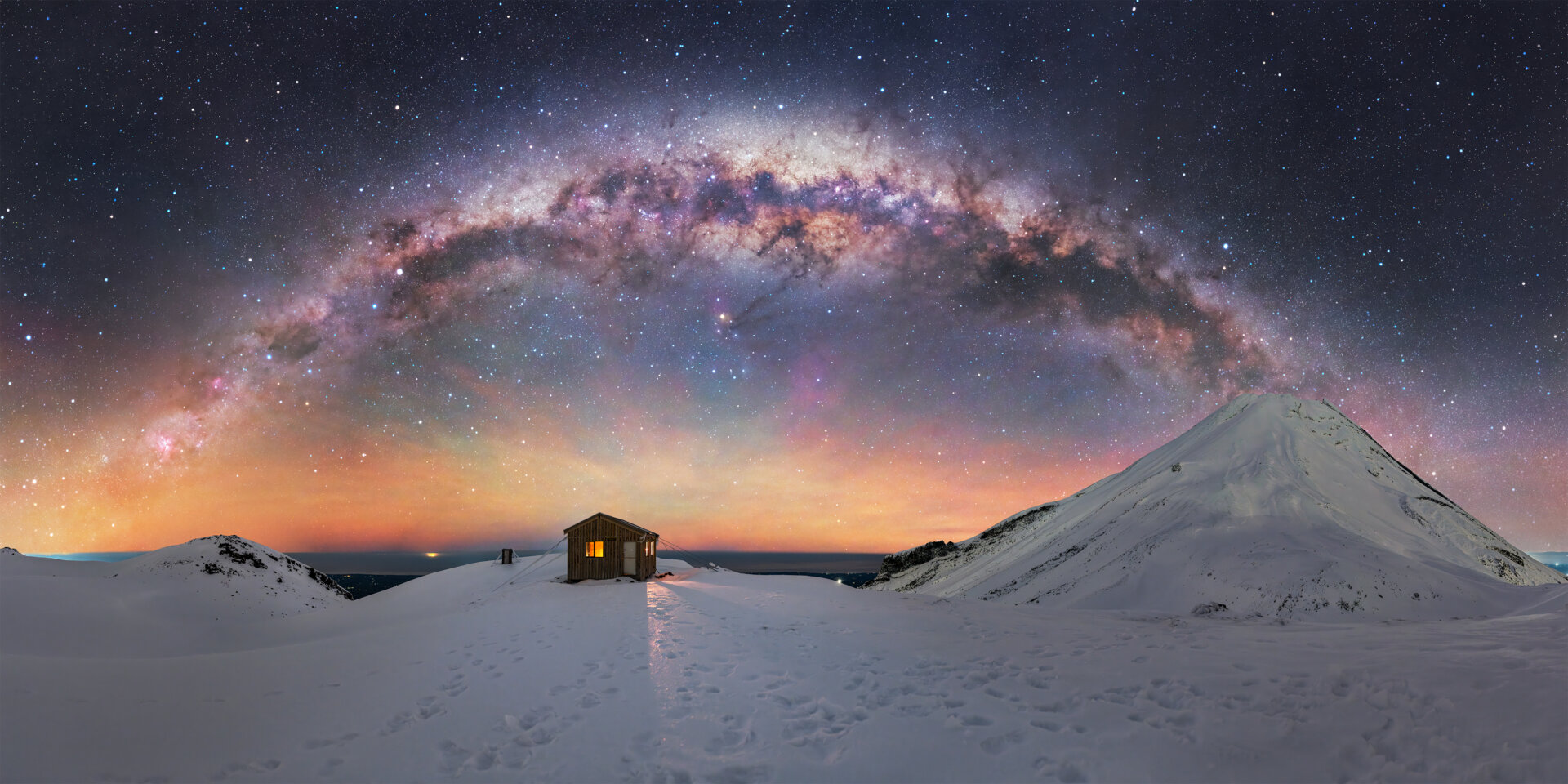 Story: To get this image I hiked 5 1/2 hours up to Fanthams Peak (Mt Taranaki) through deep snow and ice and dealt with temperatures well below zero (-15C windchill) and stayed at the North Island\'s coldest hut. It was the most difficult hike I\'ve ever done due to the 20kg pack weight I was carrying and the soft snow that meant for every step I took I\'d slide back down half a step, but the reward of getting this and other images in the end made it more than worth it. While not the first to get the full Milky Way arch from this location, my take on it is a bit different from others and I\'m really pleased with the result. Inside the hut it was literally freezing at -1 C and a big patch of ice on the floor. There\'s no heating at all in the hut, and the toilet is an outhouse long drop!