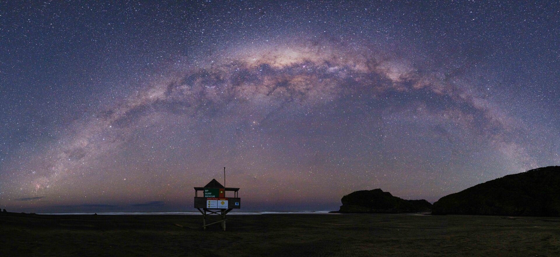 Milky Way grand pano with the iconic lifesaving tower and the milky way setting on the west coast.